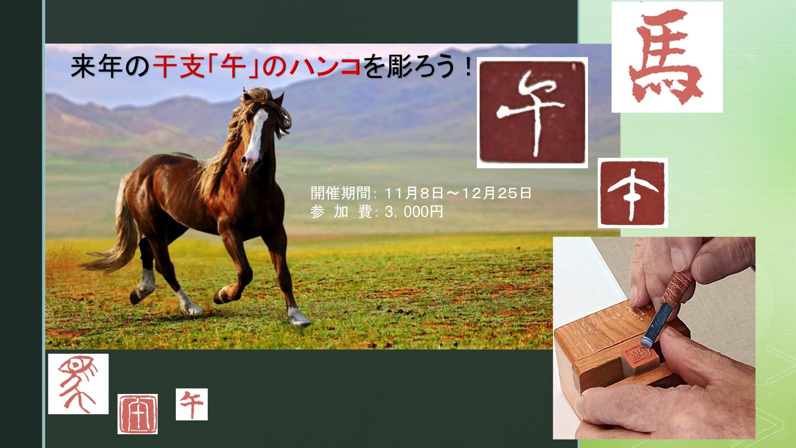 | イベント名 | 来年の干支「午」を彫る篆刻体験 |